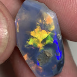 Australian Opal Gem Grade Single semi Black 5cts Rub/Rough Super bright Orange/Yellow & Multifires Broad flash / almost Flagstone pattern 22x14x2mm WSN28