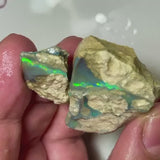 Bling Huge Grawin Dark base Multicolour Seam opal formation split pair 120.00cts Exotic Bright Vibrant Green dominant M.fires Sand/clay host rock Own a piece of Grawin 35x30x17 & 25x17x9 mm NSW070