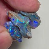 This 24.50ct stack of Lightning Ridge dark base knobby opal rough showcases striking blue and green dominant fires across a variety of natural formations. With excellent colour potential and promising bar structures, these pieces are well-suited for lapidary work or high-grade collecting.