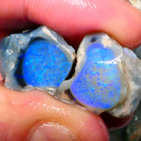 Big Sized Lightning Ridge Gem Dark Crystal base (semi Black) Knobby split 44.00cts Stunning Super Bright Green & blue dominant M.fires Gorgeous Confetti patterns 24x16x13mm & 23x18x15mm NSW103