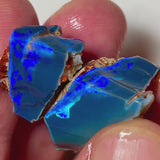 Gem Thick Black Seam opal rough split 55.00cts Lightning Ridge Bright Vibrant Blue dominant fires to cut 30x15x12 & 20x18x11mm NEW924