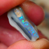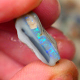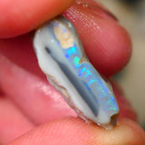 Lightning Ridge Gemmy Dark base (semi Black) Clipped Knobby opal rough 11.50cts Gorgeous bar with Bright Green/Blue/Teal Fires to cut 21x13x7mm NSW111