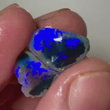 Lightning Ridge Rough Opal 7.75cts Gorgeous Black Knobby Split Stunning bars with lots of Bright blues 15x9x7 & 12x9x4 mm WAE42