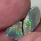 Lightning Ridge Rough Opal Dark Base Small sized Seam Split 5.45cts Seam Split Stunning Multifires 17x8x5mm & 12x9x5mm WSY84