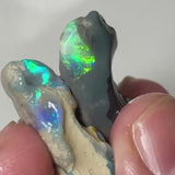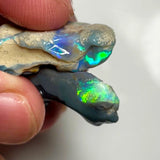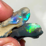 Lightning Ridge 33cts Nice pair of Dark base Crystal Opal formations rough to cut/carve Gorgeous Bright Multicolours 30x14x5 & 27x12x8 mm WAE65