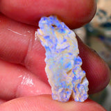 This Lightning Ridge Opal Rough Rub, measuring 26 x 10 x 7 mm, is a gamble piece offering promising bright blue colors. Pre-shaped and partially rubbed, it provides a glimpse into its potential while still holding the excitement of discovery.