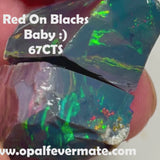 Big Thick Mulga® Black/Dark Seam opal rough pair to cut 67.75cts Wee Warra plains Reds/Golds/Greens Not something you see everyday 25x15x14mm & 22x14x9mm NEW957