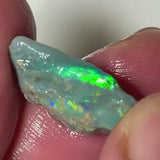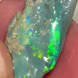 A striking dark base knobby opal rough from Lightning Ridge, showing bright multicolour fire with a strong green dominance. The face direction is clear, with structure and brightness already coming through — a solid choice for cutters looking to shape a compact but high-impact stone. Nice proportions and bold potential packed into under 8 carats.