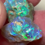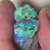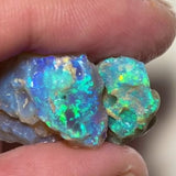 Coocoran Dark Crystal Knobby opal rough pair to cut 23.95cts Gorgeous Bright Green/blue dominant fires to cut 23x16x7mm & 18x14x8mm NEW954