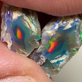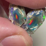 Exotic Red on Black Lightning Ridge knobby opal rough split 9.00cts Gorgeous Multifires to cut 15x8x7 & 10x9x7mm NSW091