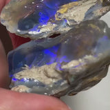 Lightning Ridge Rough Opal 80cts Huge Stunning Dark Crystal Knobby Split with Blues 30x20x15mm & 30x13x10mm MFB34