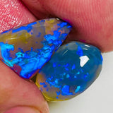Lightning Ridge Rough / Rub Dark Base Crystal opal Pair Miners Bench® High dome knobby 12.2cts Gorgeous Bright Fires 16x12x5mm & 16x13x3mm MFB02