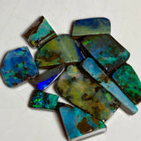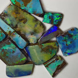 Winton Boulder opal Rubs/rough/preforms parcel 76.50cts Nice faces mostly greens/blues/Yellows 23x10x3 to 9x5x2mm NEW939