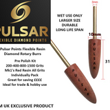 PULSAR™ DIAMOND RESIN POINTS LAPIDARY BURRS FOR DREMEL & ROTARY TOOLS 3MM SHAFT PRE POLISH SET 200-400-800-1500 GRITS nova