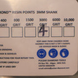 PULSAR™ DIAMOND RESIN POINTS MK2'S COLOUR CODED LAPIDARY BURRS FOR DREMEL & ROTARY TOOLS 3MM SHAFT POLISH SET 4x 3,000 GRITS