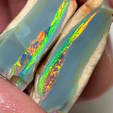 A standout premium parcel of gem quality cutter’s seam opal rough from Grawin, Lightning Ridge. This 22.00ct selection features super bright red, orange, and yellow dominant fire, paired with clean, transparent bar structure ready for high-end cutting.