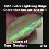 Lightning Ridge Cutters Super Select Seam rough to cut 8.50cts Just Look at that Amazing Bar ! Blocky Pattern Potential ? Super Bright Multifire Bling ? 17.000 x 10.000 x 7.000 mm NEW965
