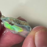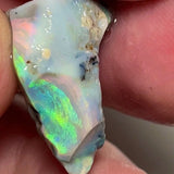 This vibrant 12.75ct dark base seam opal rough from Lightning Ridge boasts a stunning mix of yellow, orange, and green dominant fires. With a balanced form and exciting fireplay, it’s ideal for lapidary work or keeping as a vivid collector’s piece.